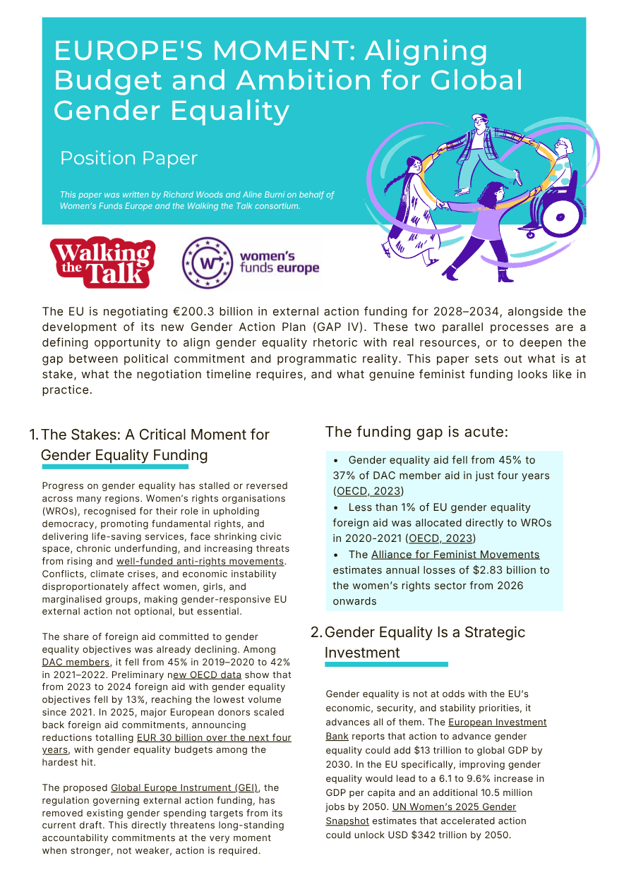 Position Paper: ‘EUROPE’S MOMENT: Aligning Budget and Ambition for Global Gender Equality’